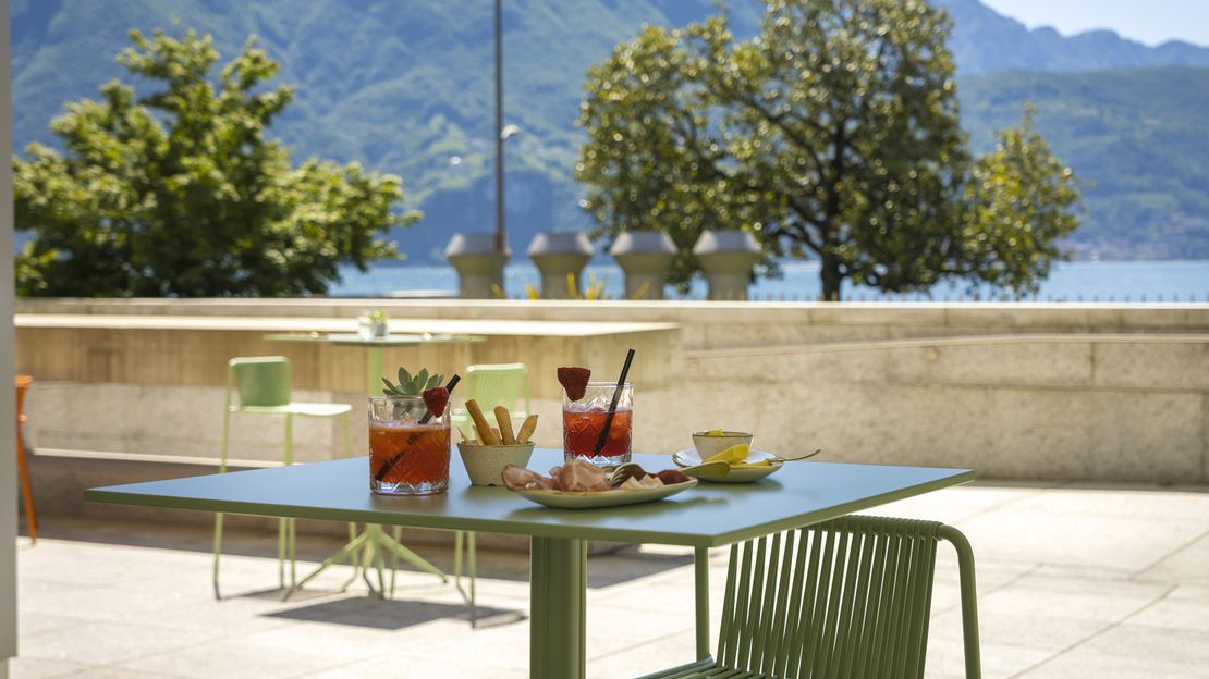 La terrazza esterna in Piazza Luini, oltre alla ristorazione prevede un servizio bar continuato dal caffè agli aperitivi. Immersi nel magico quadro composto dal golfo di Lugano, è il luogo ideale per iniziare la giornata concedendosi una colazione con vista, pranzare all’esterno riscaldati dal sole o incontrarsi prima degli spettacoli.
