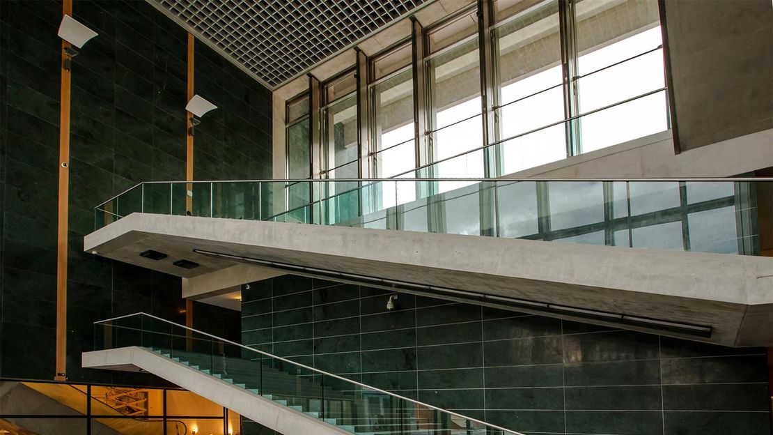 Da una parte il Museo, dall’altra la sala concertistica, alle spalle l’anfiteatro con il parco, di fronte la grande piazza. Tutte si intersecano in questo cardine trasparente che accoglie e offre al pubblico, nella vasta disponibilità dei suoi 650 metri quadrati, tutti i servizi necessari: la biglietteria, il guardaroba, il bookshop e le aree di ristorazione. E che spesso si trasforma in luogo di rappresentazione ed esposizione, dove assistere a concerti, incontri, presentazioni di libri e mostre d’arte, diventando, una volta in più, un punto di riferimento per la città.