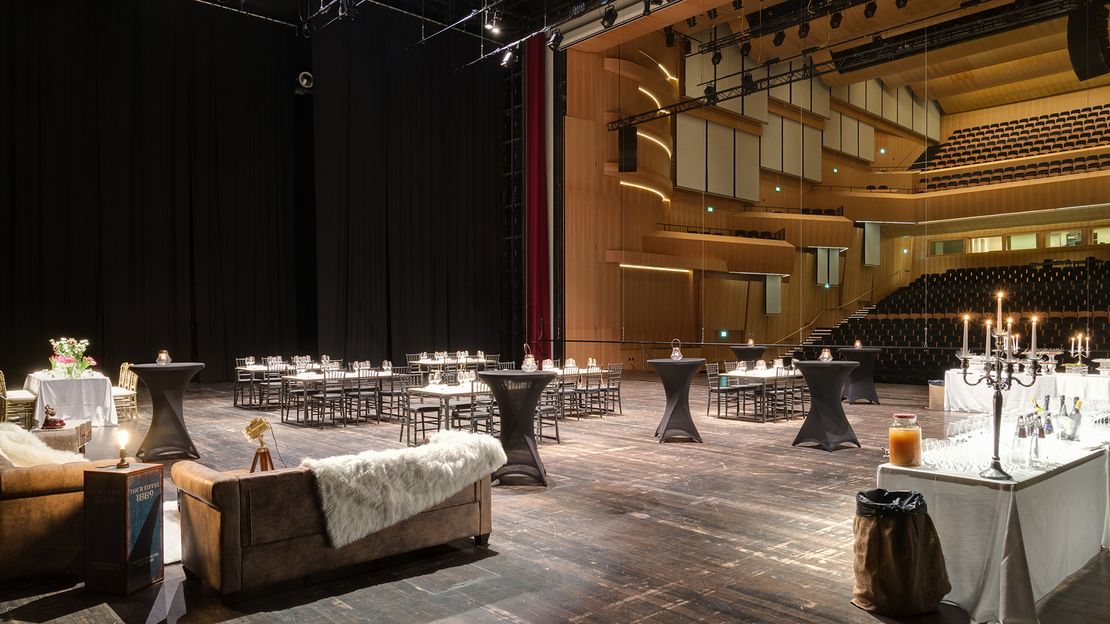 La conchiglia acustica, la fossa orchestrale e il boccascena, infatti, possono modificarsi per accogliere concerti sinfonici di altissimo livello, ma anche performance teatrali ed eventi aziendali e associativi: conferenze, convention, presentazioni e cerimonie possono essere organizzate con la possibilità di personalizzare lo spazio in modo assolutamente autonomo e svincolato dagli spettacoli programmati. Le opportunità offerte dalle dotazioni tecnologiche e dagli accorgimenti logistici consentono qualunque tipo di allestimento, dalle grandi proiezioni al trasporto e collocazione di prodotti sul palcoscenico, mettendo a disposizione i migliori strumenti di comunicazione e coinvolgimento del vostro pubblico. Al quale, a chiusura di un incontro così speciale, potete riservare anche spazi nell’ampia Hall o nell’Agorà per rinfreschi e momenti conviviali. Se è vero che ogni parte del LAC è importante e contribuisce all’unicità di questa struttura, è certo però che la Sala Teatro ne costituisce il cuore pulsante.