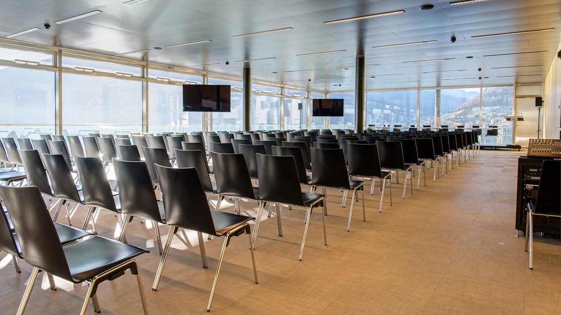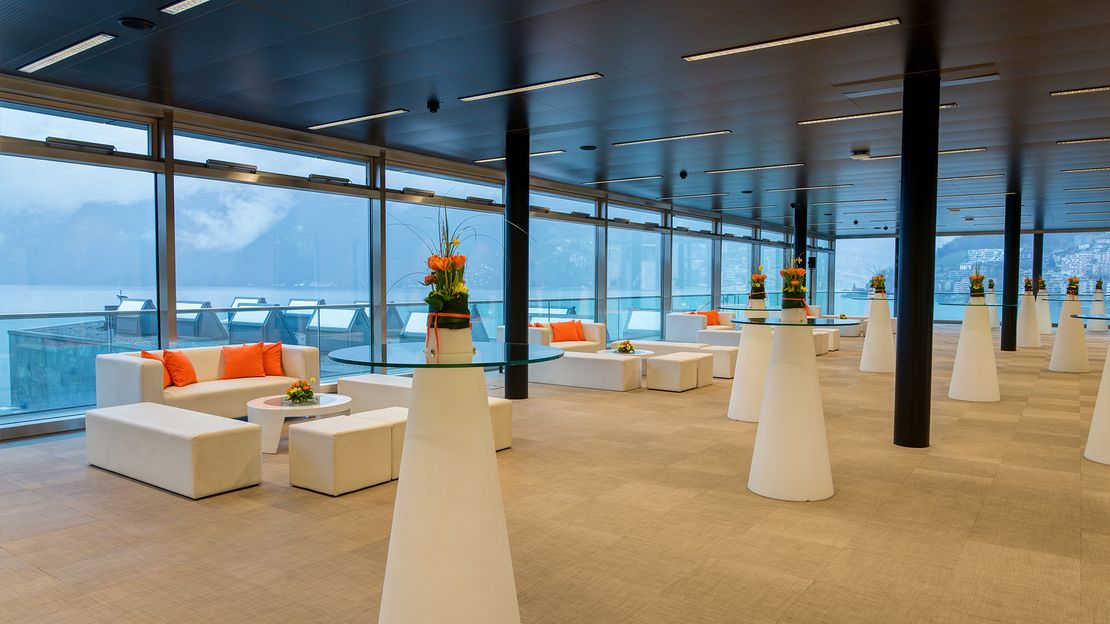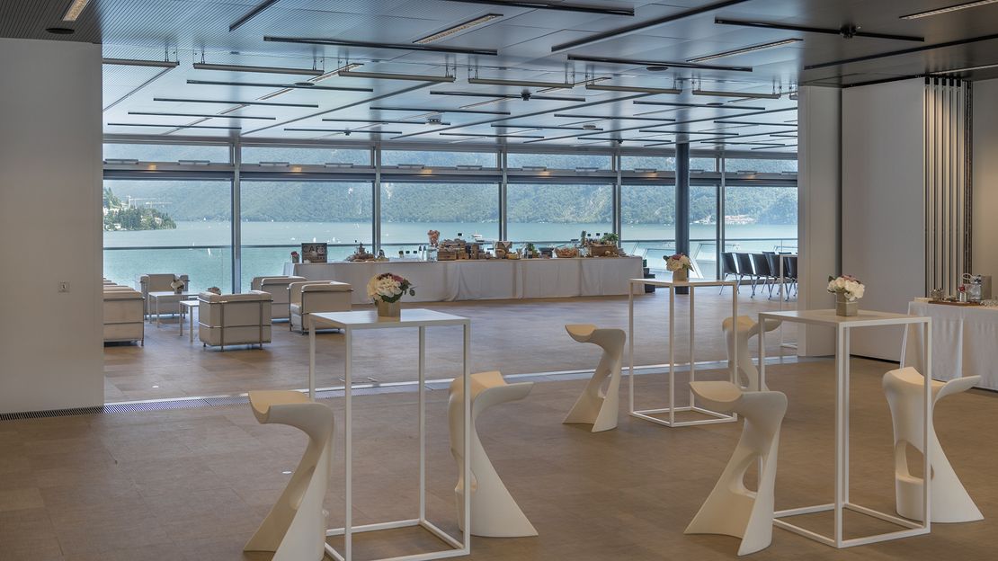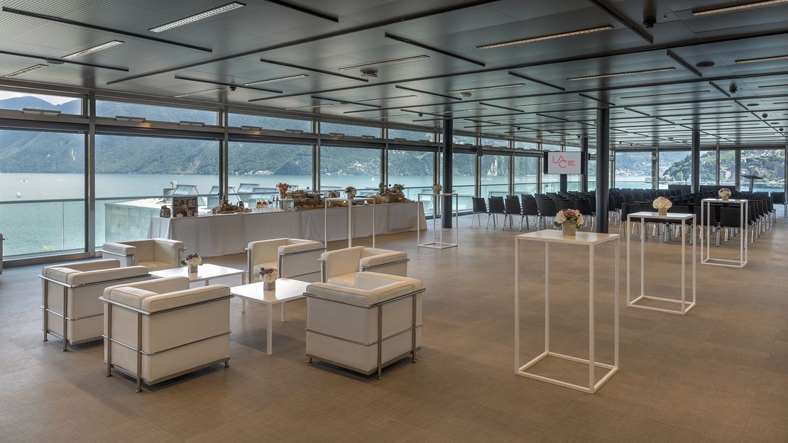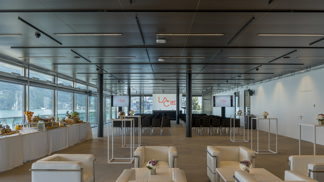 Con una sorprendente vista a 180° sul golfo di Lugano, Sala 1 è lo spazio di riferimento per gli eventi privati al LAC. Un unicum nel suo genere. Situata all’ultimo piano del LAC, con una superficie modulabile da 400 a 600 metri quadrati, con tecnologie all’avanguardia e completamente oscurabile, può ospitare fino a 300 persone per conferenze e seminari oppure diventare l’indimenticabile scenario di ricevimenti di gala.